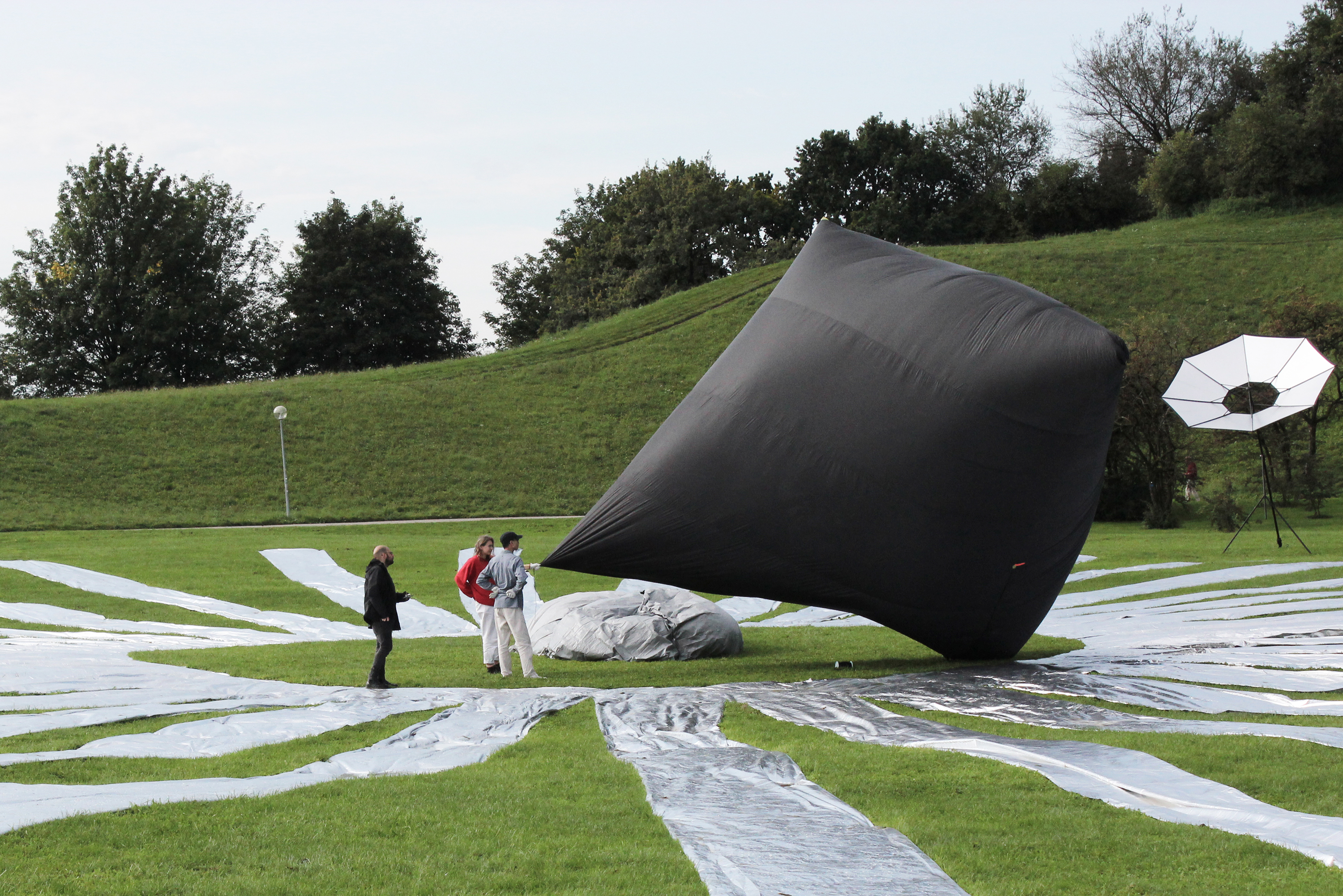 Aerocene is an open-source project initiated by Argentinian artist Tomás Saraceno. In this work, air is encapsulated within a film of black or transparent Mylar, forming airborne sculptures that drift freely on atmospheric currents. In doing so, air transitions from an invisible atmospheric element into a tangible presence within airspace. Without a predictable flight path, this encapsulated air requires specialized systems of communication, monitoring, and control to maintain its lawful navigation through regulated skies. The interplay between the fluid and solid states of air gestures toward a new mode of flight—one that transcends politically defined geographies.